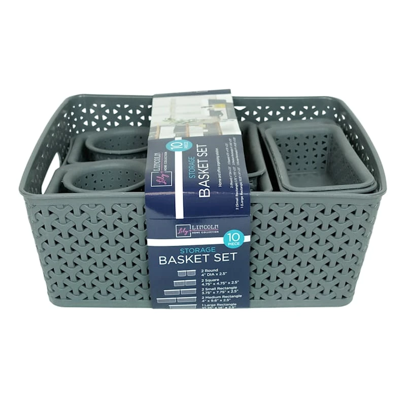 10-Piece Y-Weave Storage Basket Set, Black Pearl