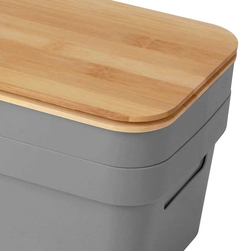 2-Pack Grey 3.5L Storage Bin With Bamboo Lid, Small