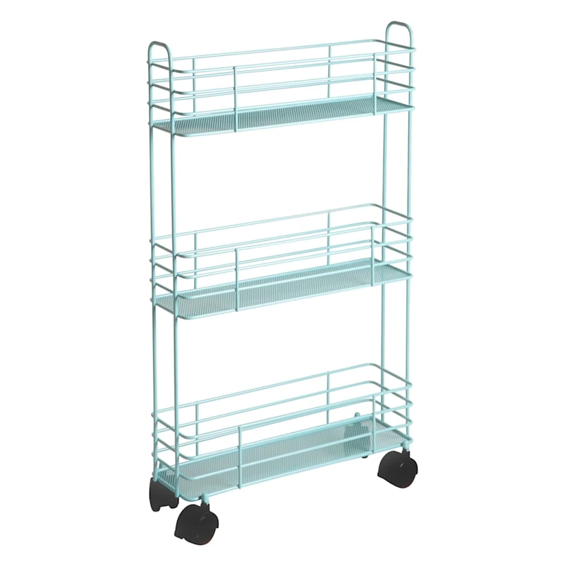 3-Tier Slim Eggshell Blue Metal Mesh Rolling Cart