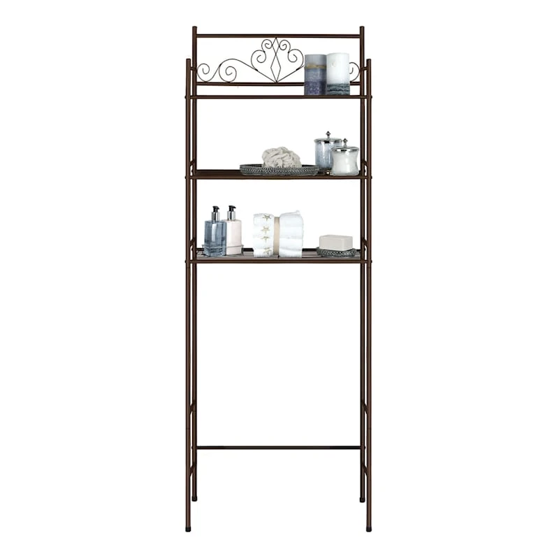 A tiny, cramped bathroom is always a challenge. Need a little extra storage space, want to clear off the countertop? Our 3-tier over the toilet space saver shelving is the ultimate problem solver. This multipurpose rack is the perfect storage solution for towels, tissue, ornaments and makeup essentials. And the decorative bronze scrolled detailed metal styling brings a bathroom to life.