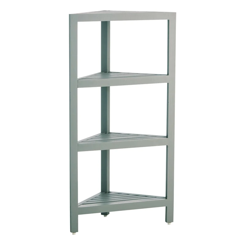 Our 4-tier corner etagere brings easily accessible storage into your tub and shower area. With four open slotted shelves and triangular design, this beechwood corner caddy will help organize any bathroom. Featuring a natural, weathered finish, this convenient caddy is waterproof.