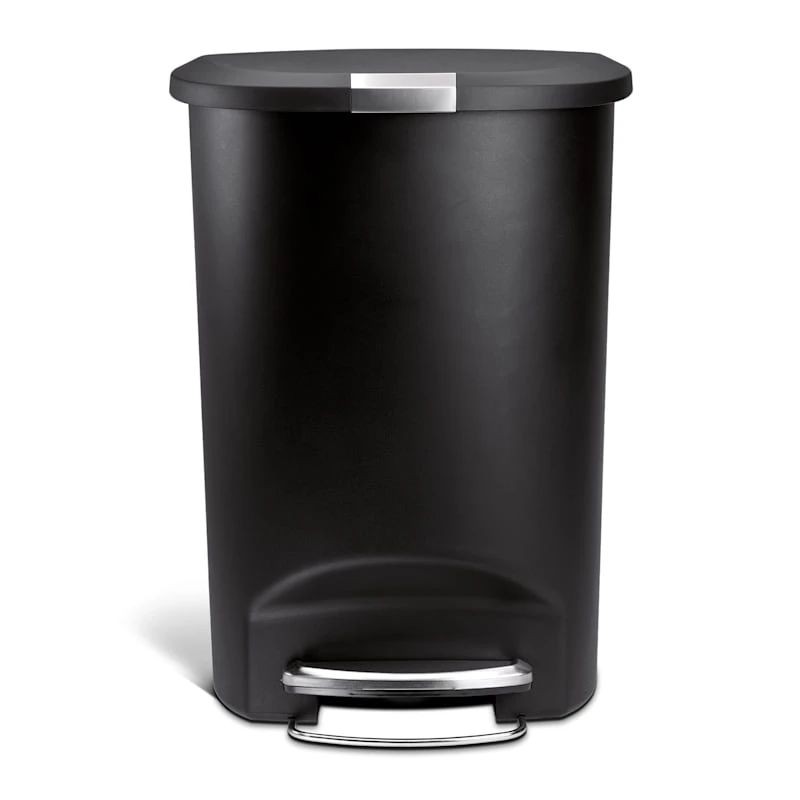 50L (13.2 Gal) Semi-Round Plastic Kitchen Step Trash Can With Lid Lock Black