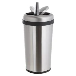 10L (2.6 Gal) Profile Step Can Brushed Stainless Steel With Black Plastic Lid
