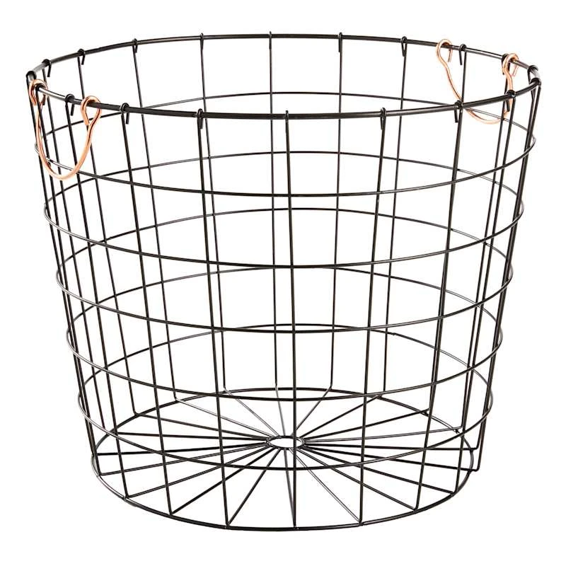 Add this large round wire basket to your storage options. Fill it with rolled-up towels in the bathroom or blankets in a guest room. Its ample size even works for books and magazines by your bed for nighttime reading.