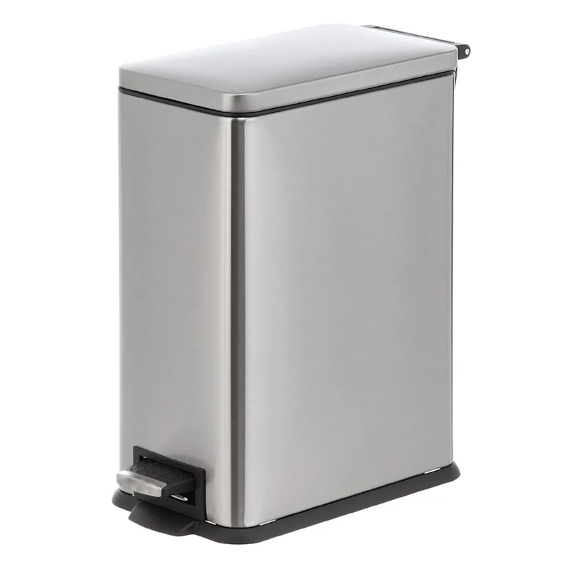 Hey there, super chef! Check out your new assistant—this sleek rectangular stainless steel trash can! Its silver finish, 9.7-liter capacity, and foot pedal make it a handy addition to your kitchen. And the lid keeps trash out of sight, for that fresh, clean chef’s kitchen look!