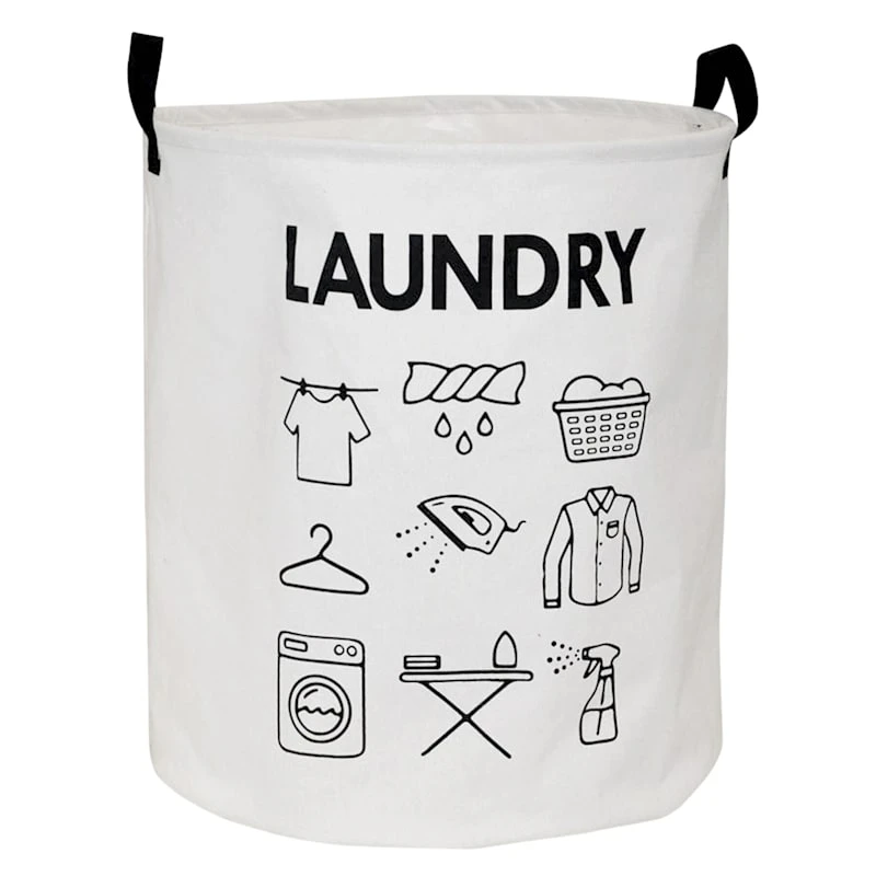 Soho White Round Laundry Hamper With Icons, Large