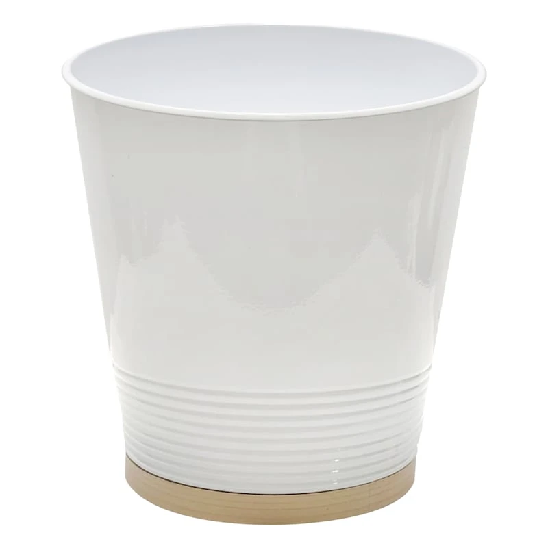 Ty Pennington White Metal With Wooden Accent Wastebasket, 9.8"
